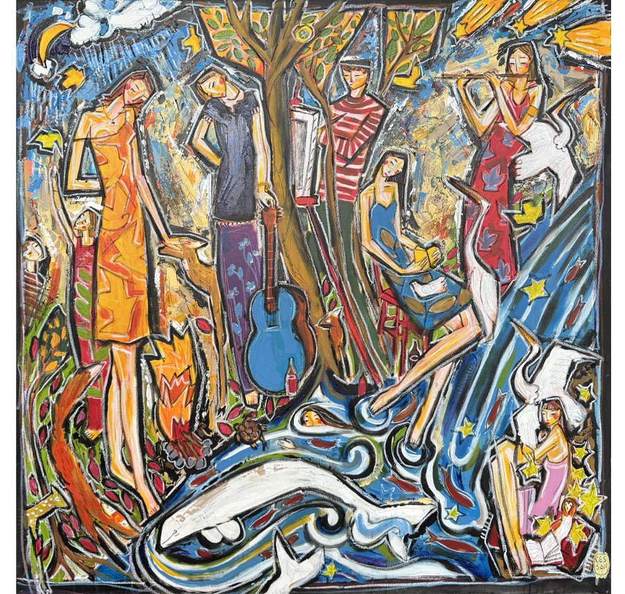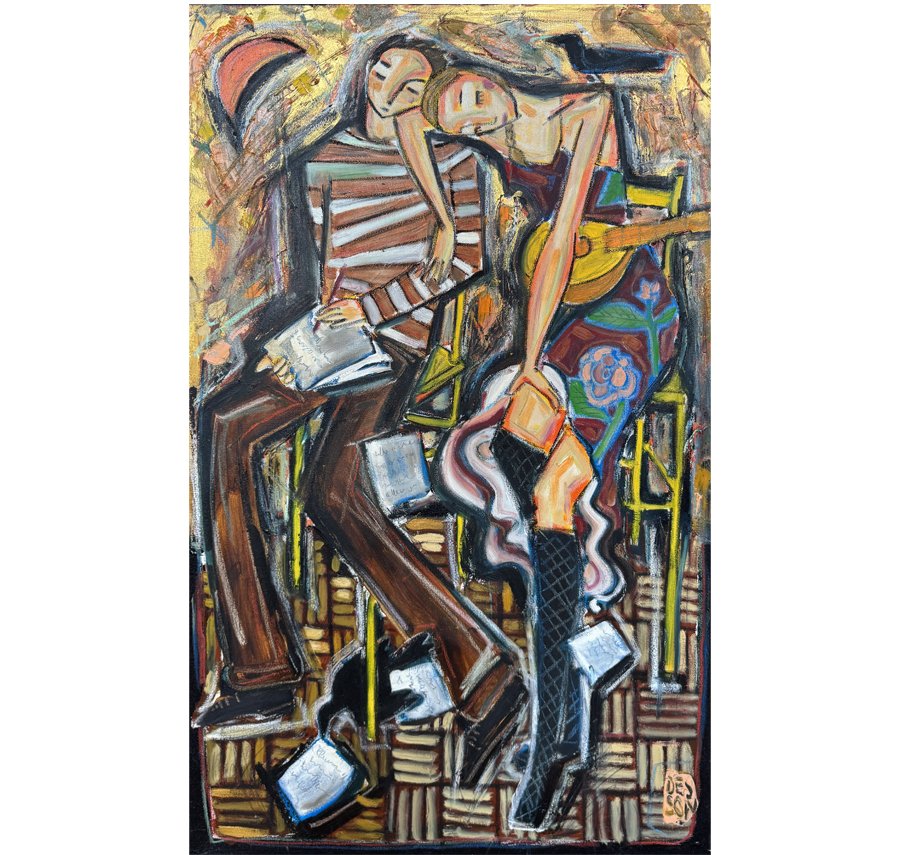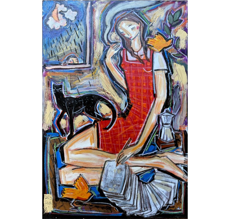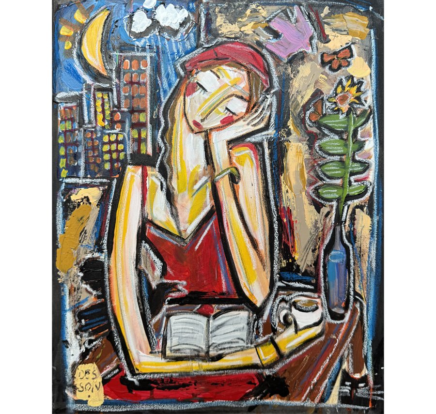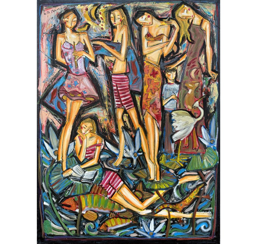 Once a drawing is chosen, Denis Chiasson transposes the outline to the canvas, which is progressively defined with the application of colour. What emerges is a painting whose subject is enhanced by strong, angular and intense lines. This meticulous process adds to his works a touch of perfectionism that is seldom seen elsewhere. His strong colours reveal an uncommon sensitivity, bringing forth touching images inhabited by a unique personal style.